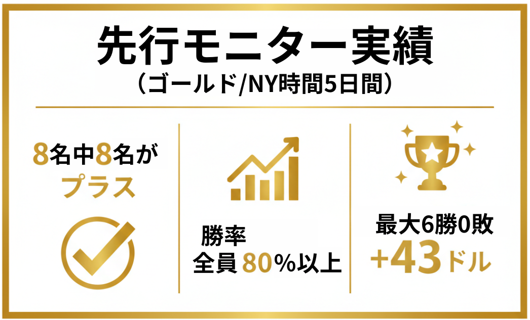 最終成績:ゴールド NY時間 6勝0敗 +43ドル