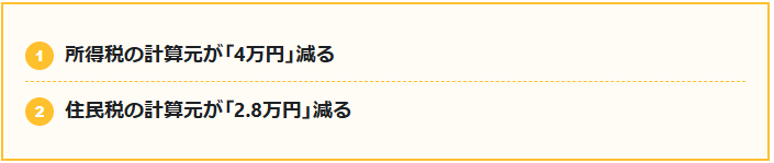 この保険に加入し、年間8万円以上の保険料を支払うと、以下の「所得控除(税金の割引)」が適用される。