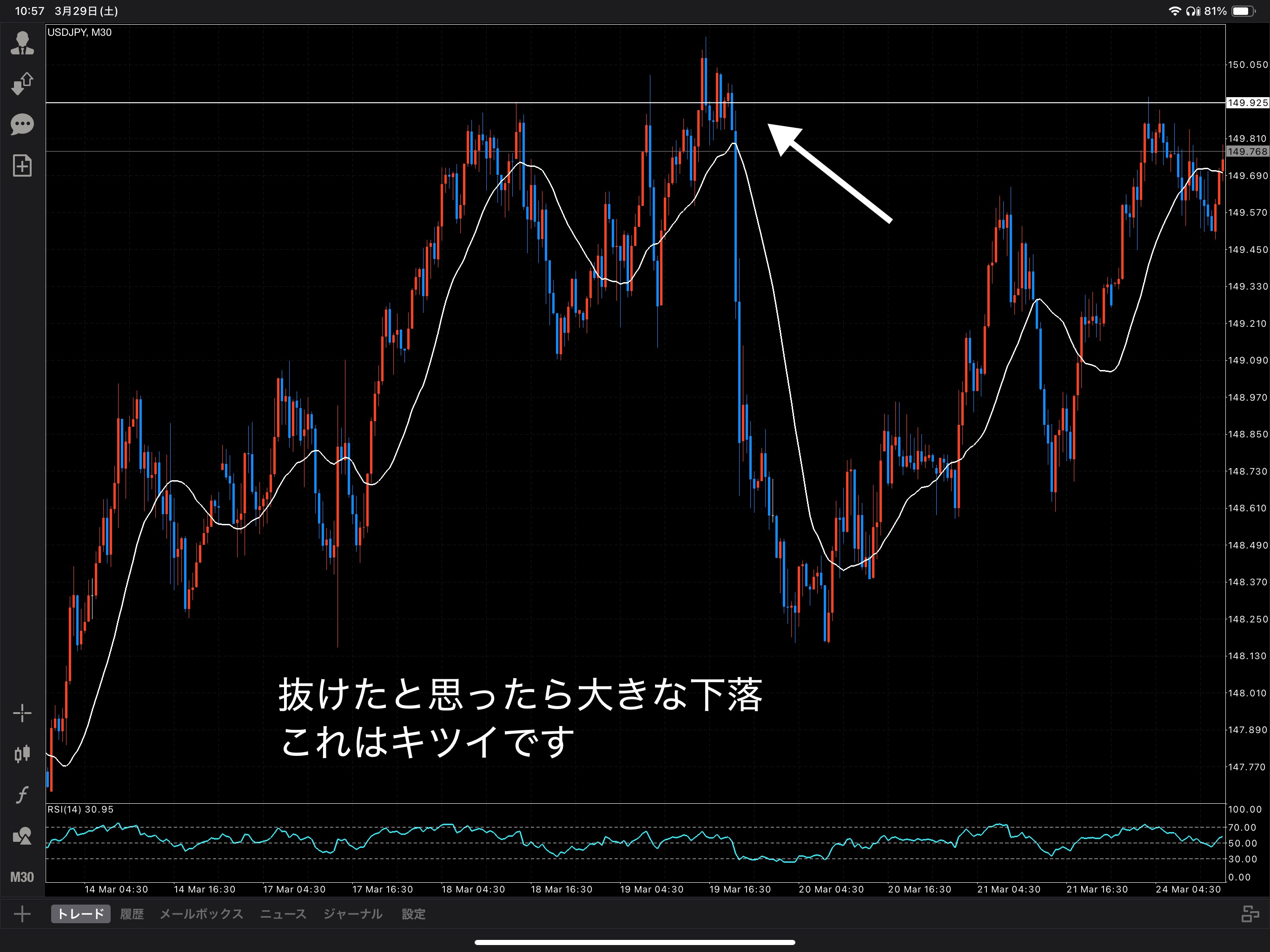 水平線も信用しすぎたら危険です。抜けたので上確定かと思いきや大暴落!!