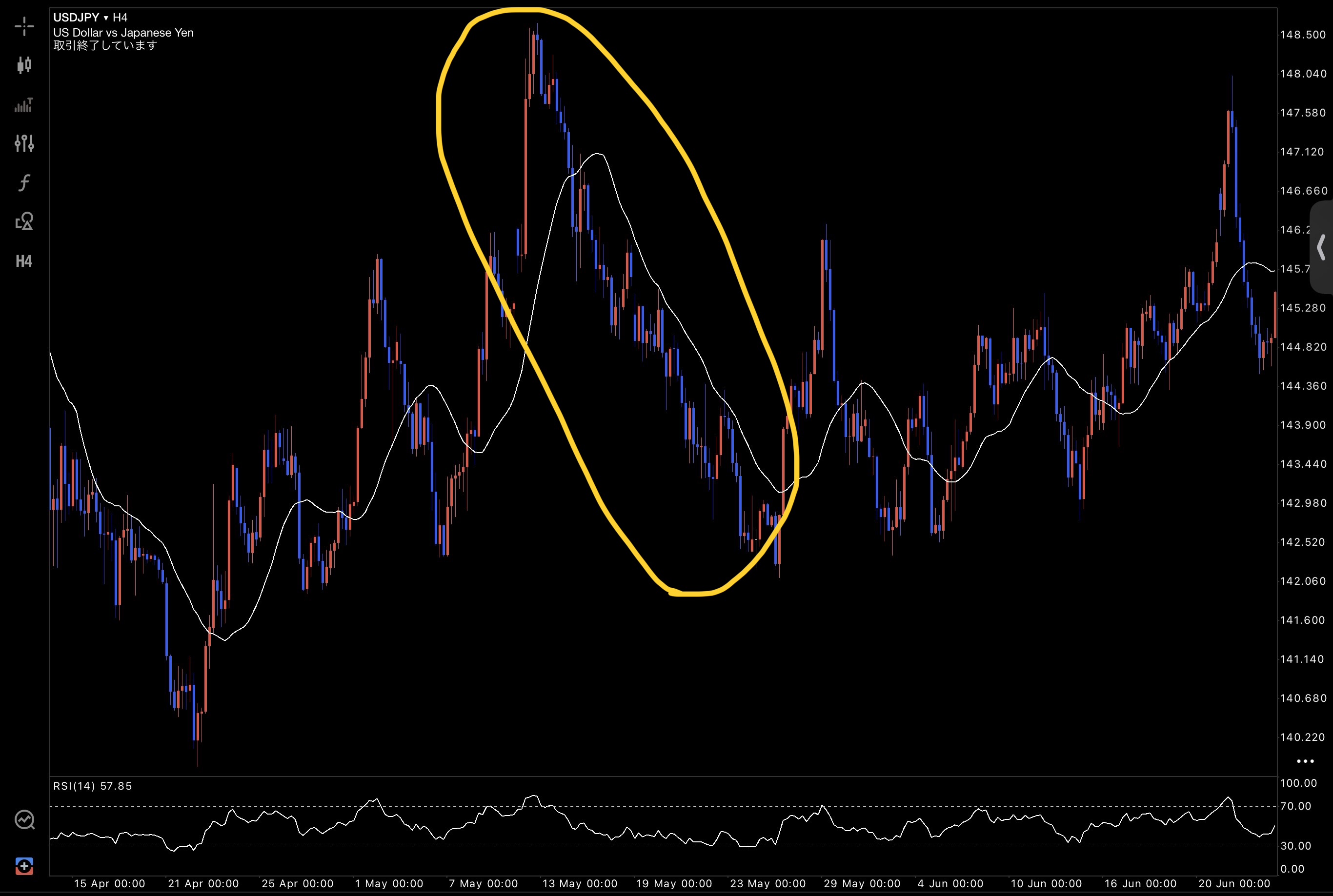 上の画像を見てください。これもロジック通りのイージーな取引です。