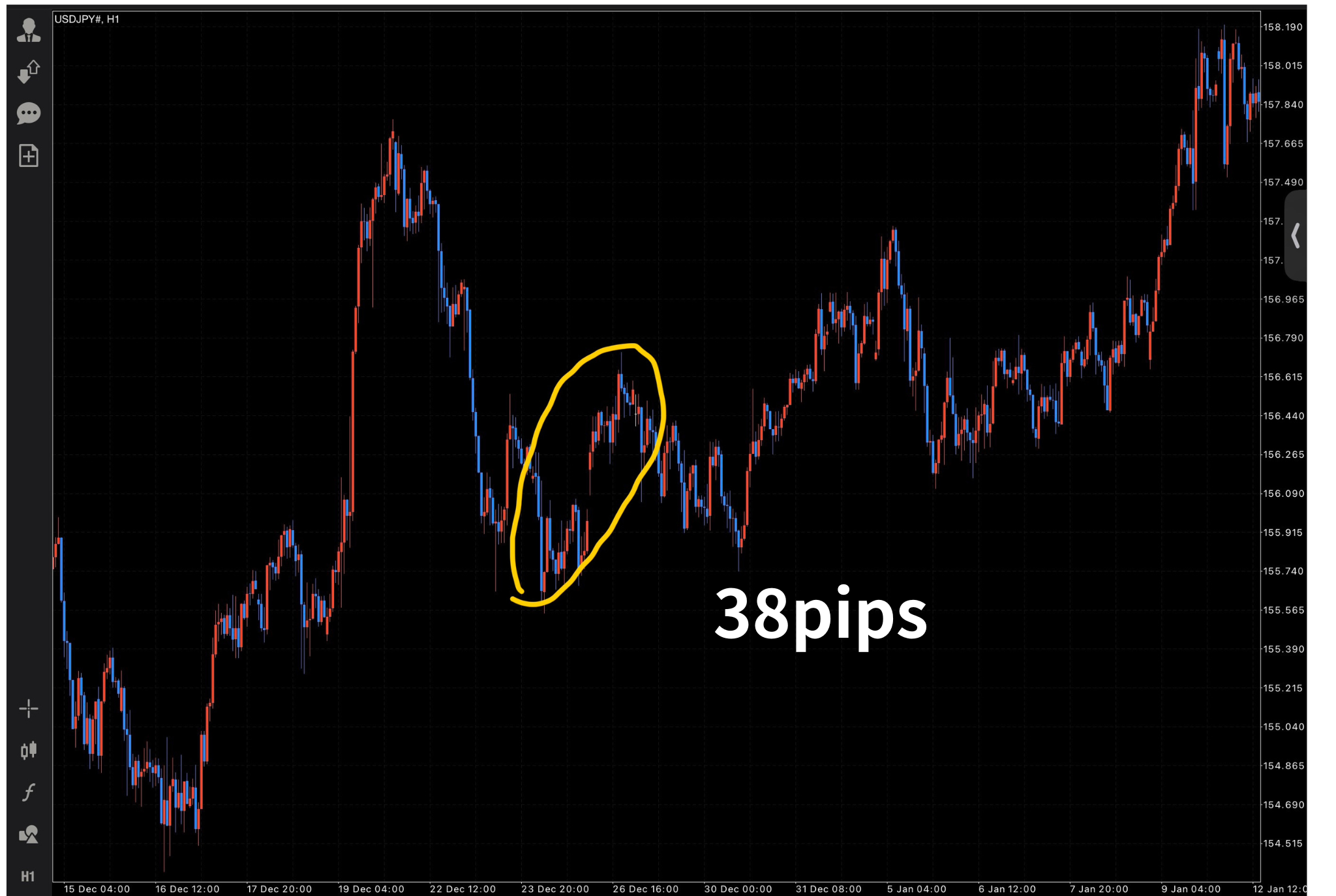 A: 相場環境にもよりますが、1時間で3~4回ほどのチャンスが訪れます。忙しい兼業の方でも、夜の数時間だけで効率よく利益ポイントを狙い撃つことが可能です。