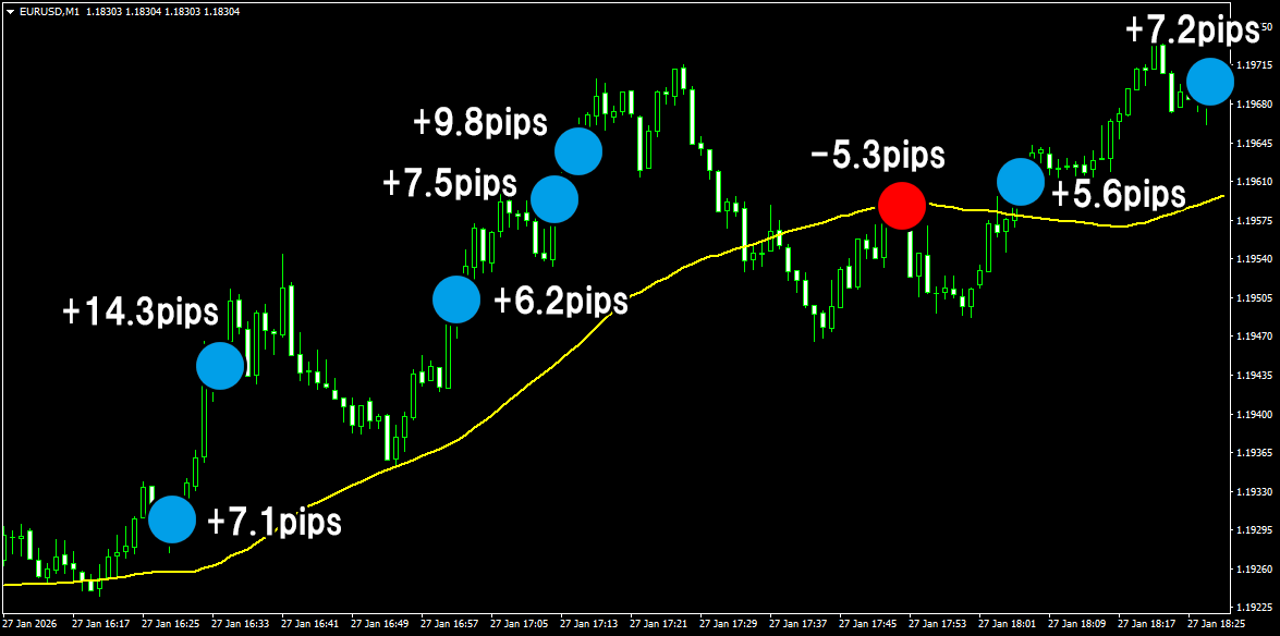 短期型のスキャルピング! 1回に+5~15pipsの利益を何度も積み重ねる。とにかく勝率の高いトレードにこだわったロジック!
