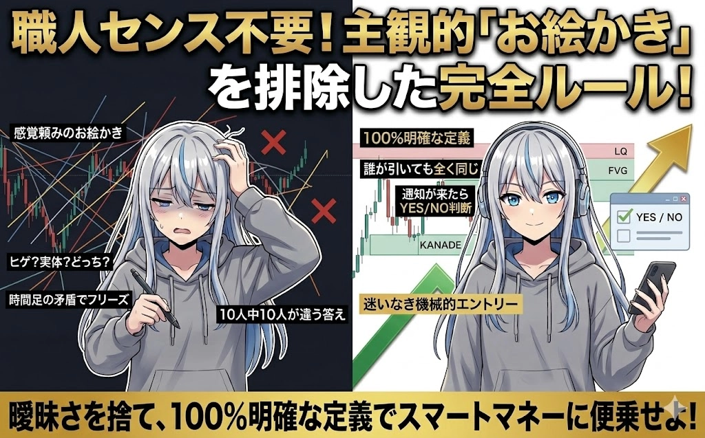 仕事中や家事の合間に通知を確認し、条件を満たしていれば指値を置いてチャートを閉じる。そんな「自由な時間」を最大化するための設計になっています。