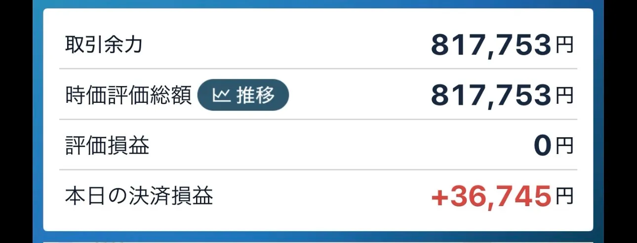 THE DAYTRADE会で公開した¥500,000スタートで約1ヶ月で+¥300,000