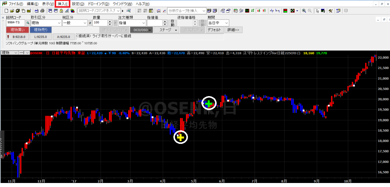 1 挿入→ショウミー→『江守トレステインジfor日経225CFD』をクリック