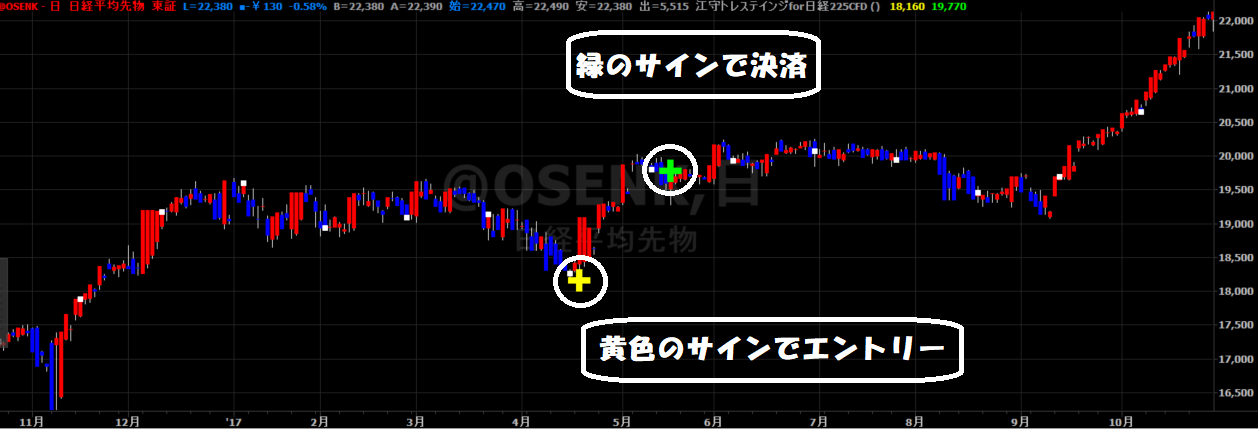 日経平均先物の日足チャートを利用した、ロングのみの戦略になります。