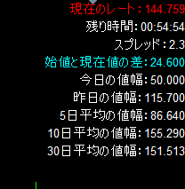• 値幅などはPIPS単位かそのままか表記を選択出来ます。