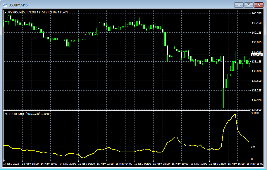 ◆ATR比を表示するインジケーター MTF_ATR_Ratio_XXXXXXXX.ex4 について