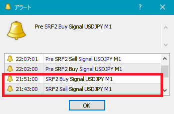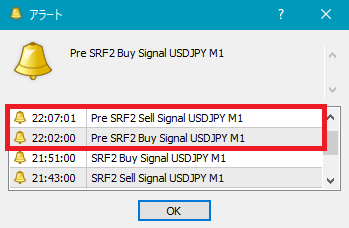 ◆ラインブレイク後にSRF2のサインが点灯するパターンなど
