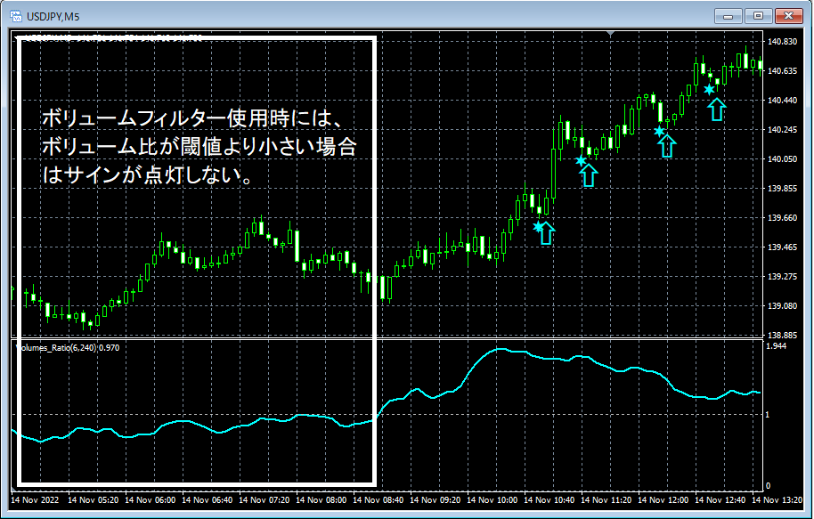 ◆ボリューム平均比を使ったボリュームフィルターの設定について