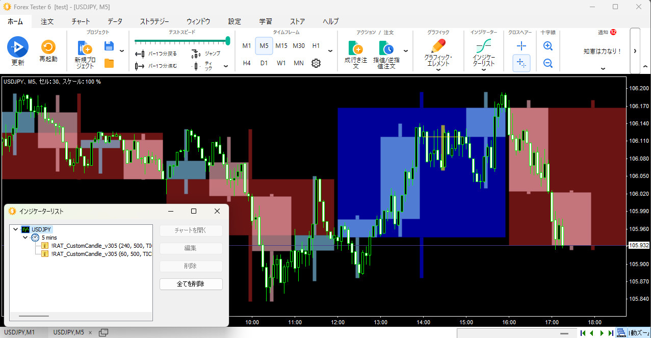 【FT6対応】限界まで高速化したカスタムキャンドルです。上位足ローソク足を柔軟に表示可能。フォレックステスター6(ForexTester6)対応。