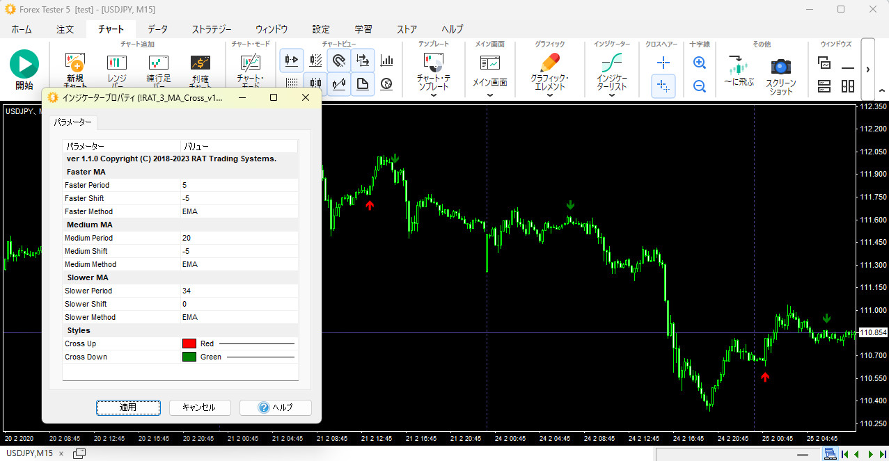 ForexTester用 3-MA-Cross インジケーター (FT2,FT3,FT4,FT5 対応)