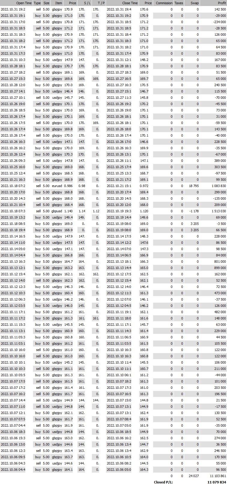 上記の取引例は、たまたまいいところを載せているのではなく、実際にサインに従っただけのものです。また、あまり使われていないとある複数の通貨 (マニュアル記載) で、このような取引が可能なのです。グイグイ口座の残高が増えていく快感を誰だって味わえるのです。