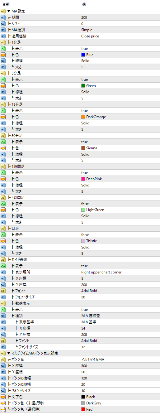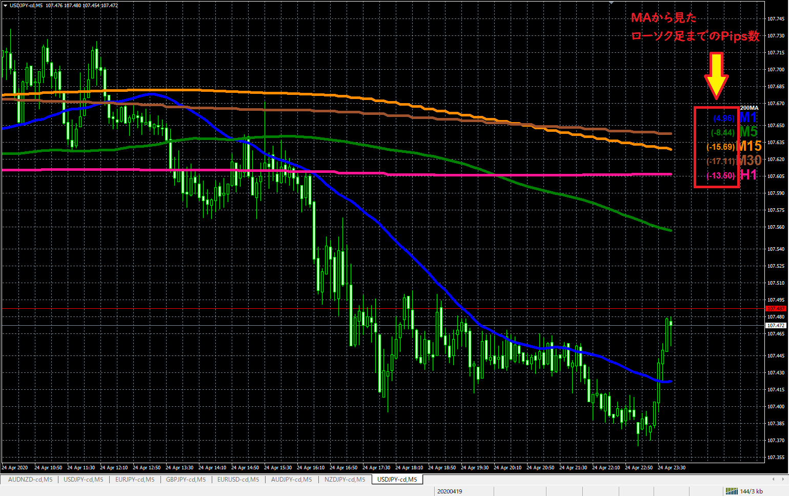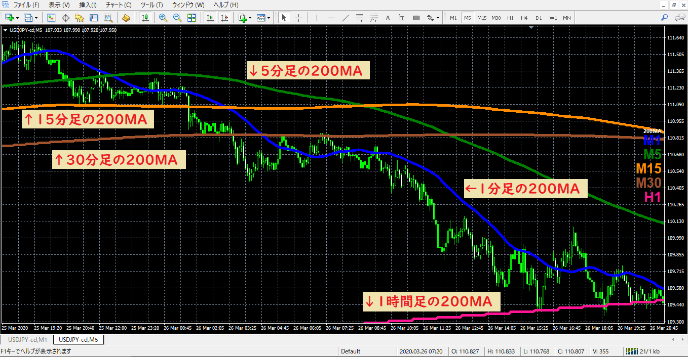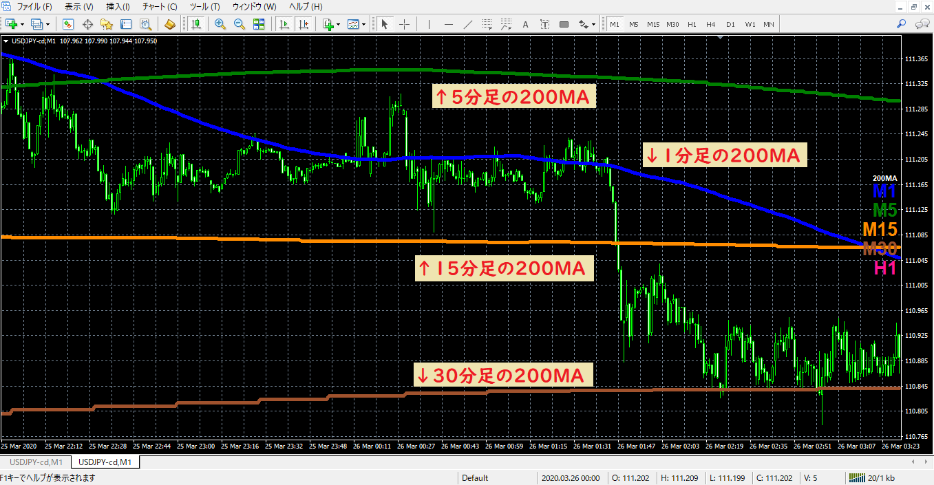 ①MA設定:異なる時間足のMAを表示する(同一期間)