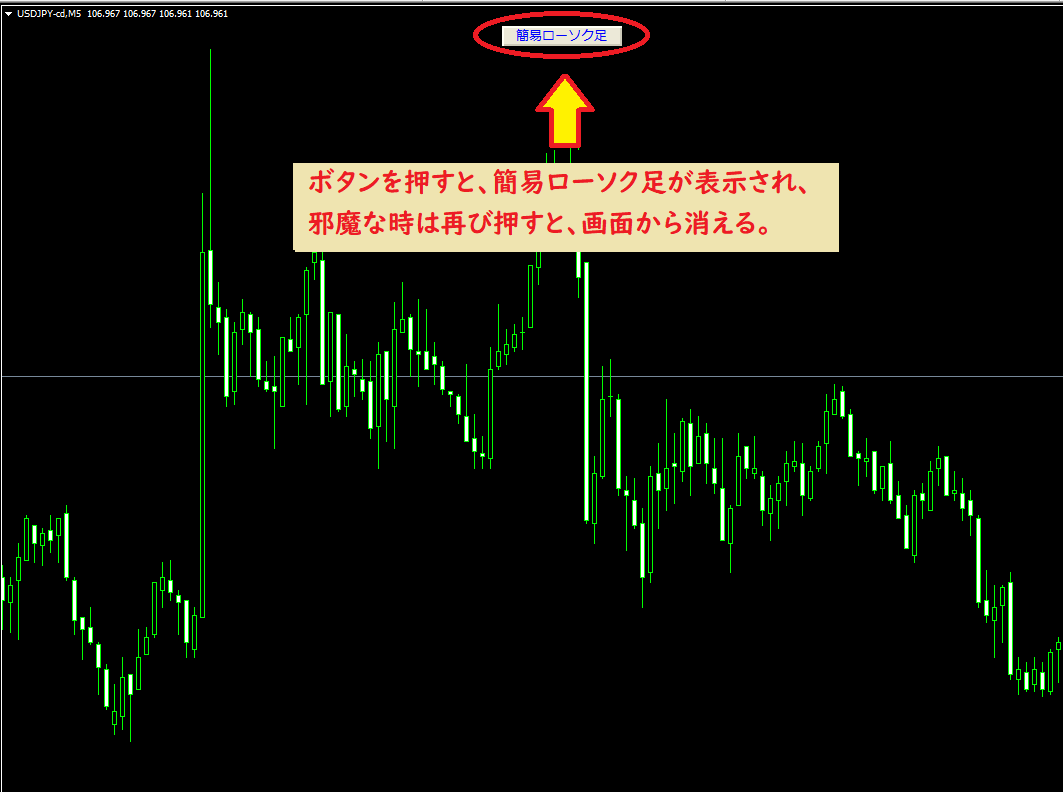 ④簡易ローソク足ボタン:表示・非表示がボタンの押下で可能です。(下図参考)