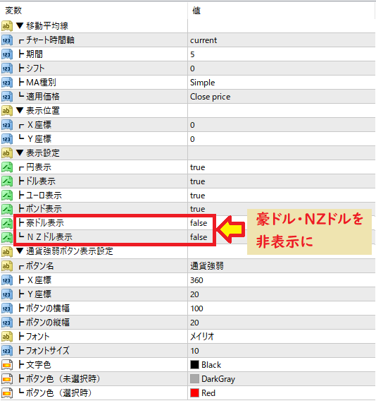MA設定:期間は設定した値で全ての通貨ペアで統一