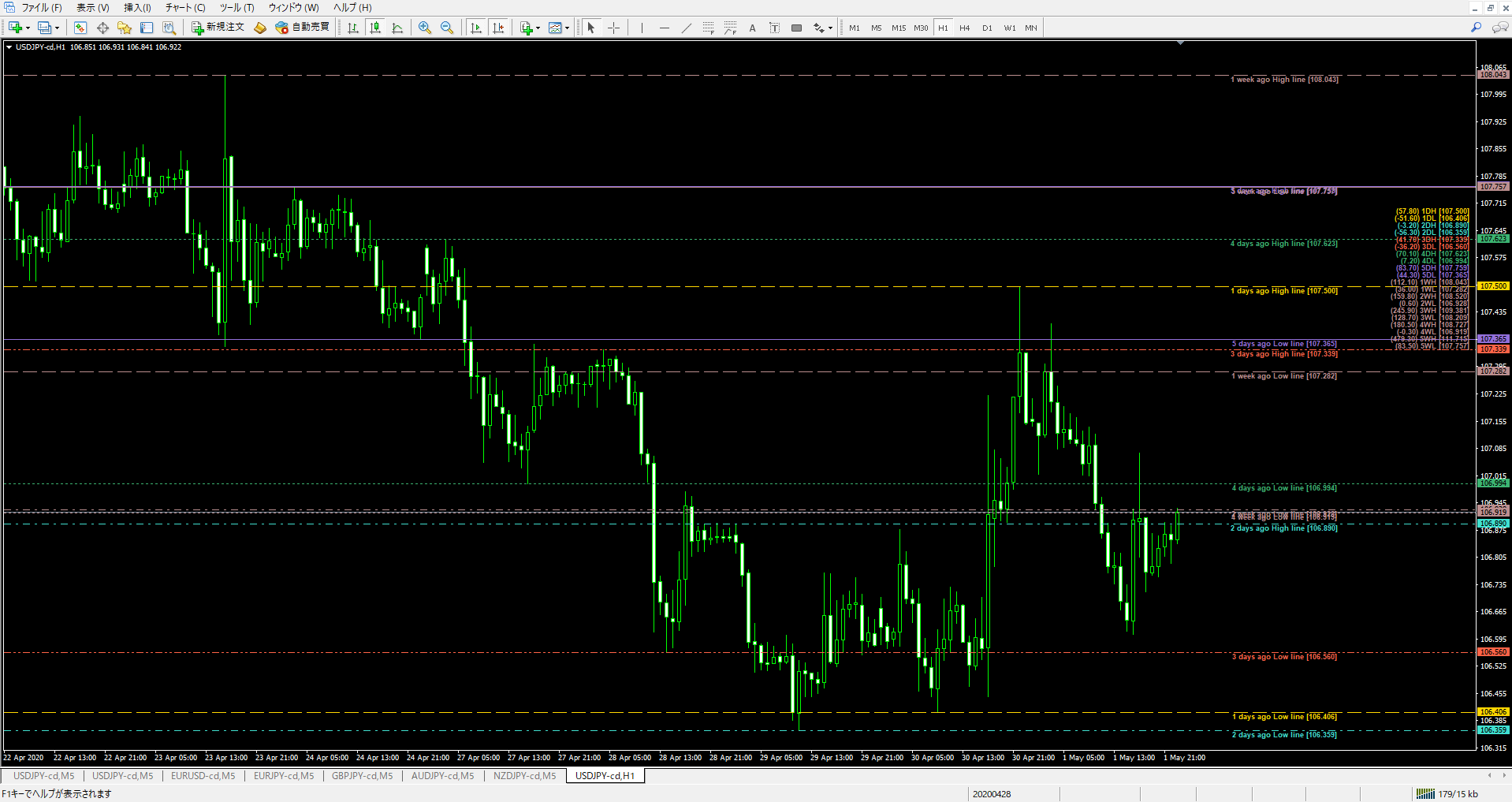 ・前日高値安値 表示(TRIAL版)