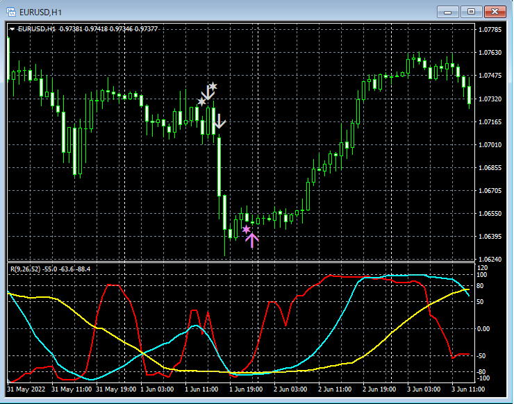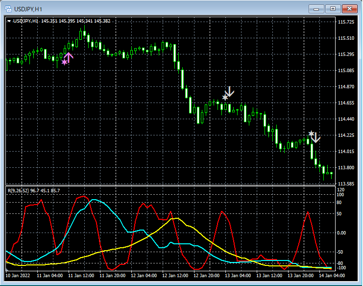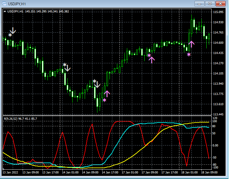 サイン発生のロジック、すなわち、「なぜそこで矢印サインが点灯するのか?」を完全に把握した上で利用できる矢印インジケーターということがいえます。