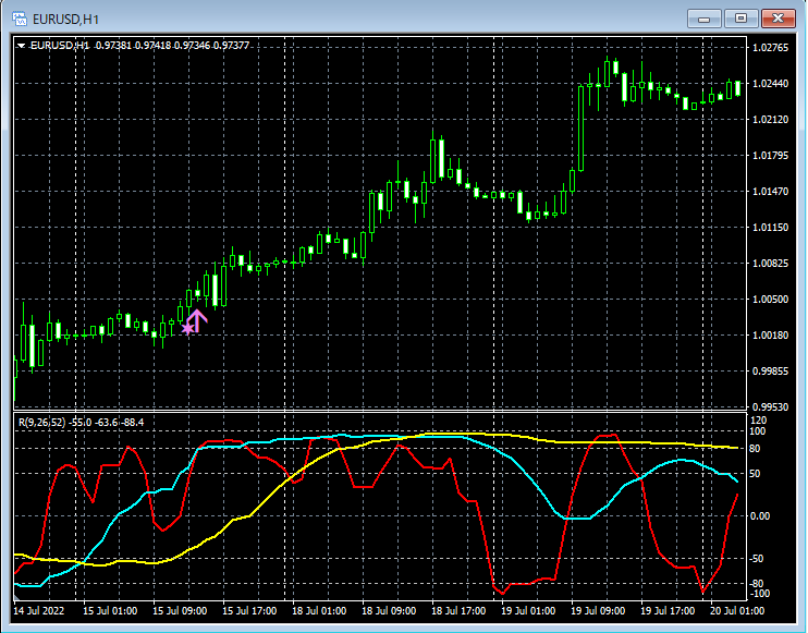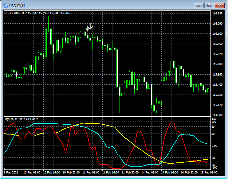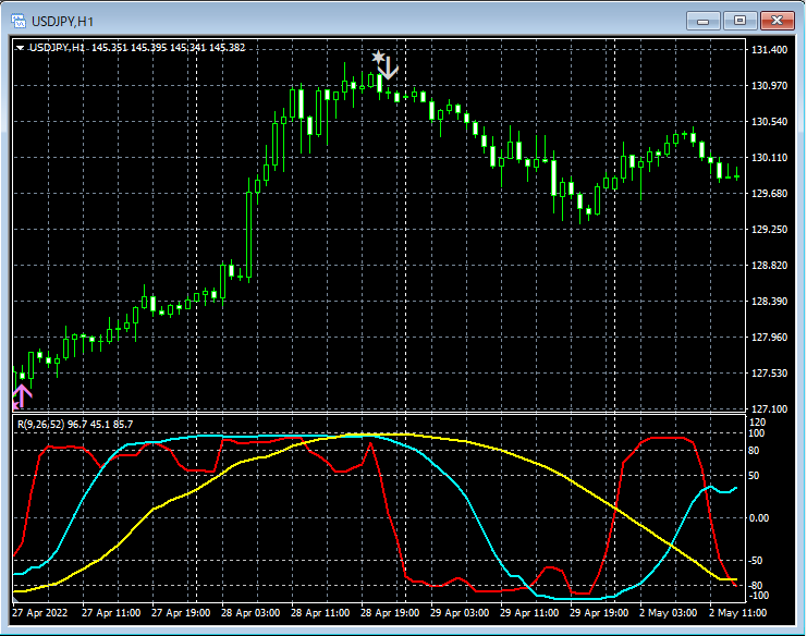 【R1R2S3】は、中長期2本のRCI(例えば、RCI26とRCI52)の向きに着目してエントリー方向を判断し、短期RCI(例えば、RCI9)でエントリータイミングをはかっています。