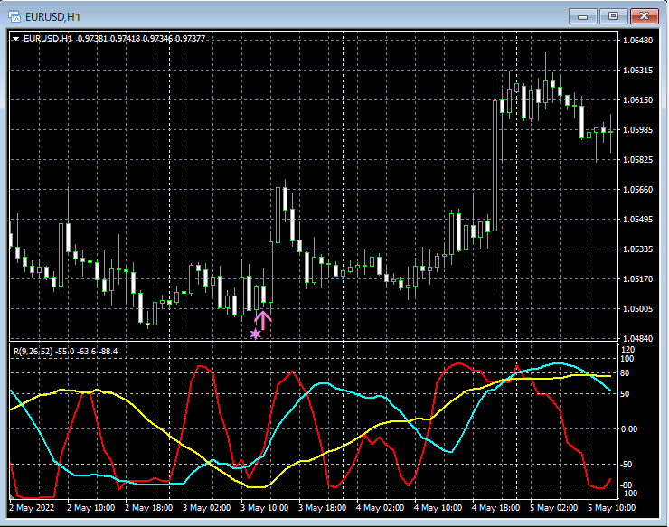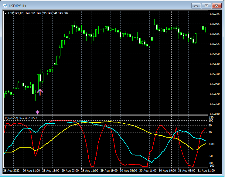 【R1R3S3】は、中期・長期・超長期3本のRCIの向きに着目してエントリー方向を判断し、短期RCI(例えば、RCI9)でエントリータイミングをはかっています。