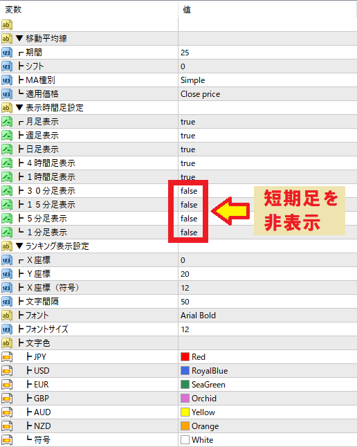 ③時間軸:対象の時間軸で統一MAでランキングを算出。