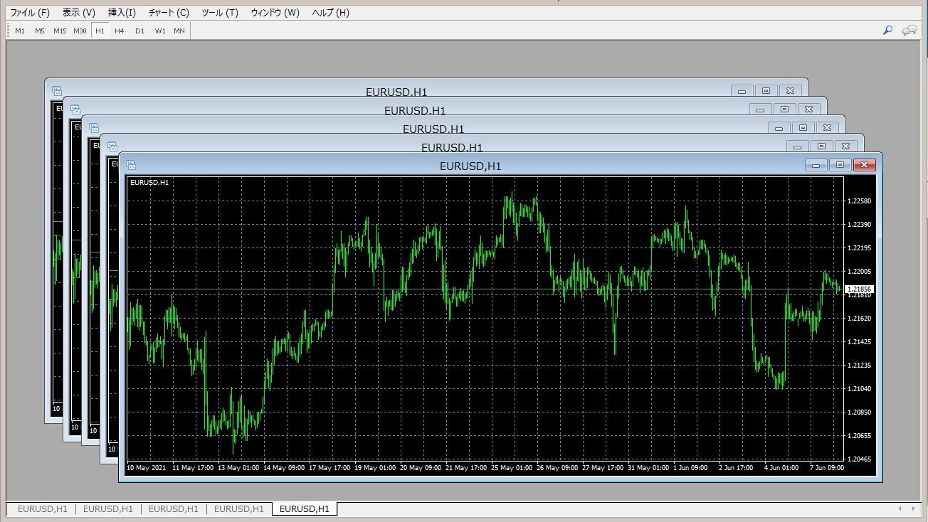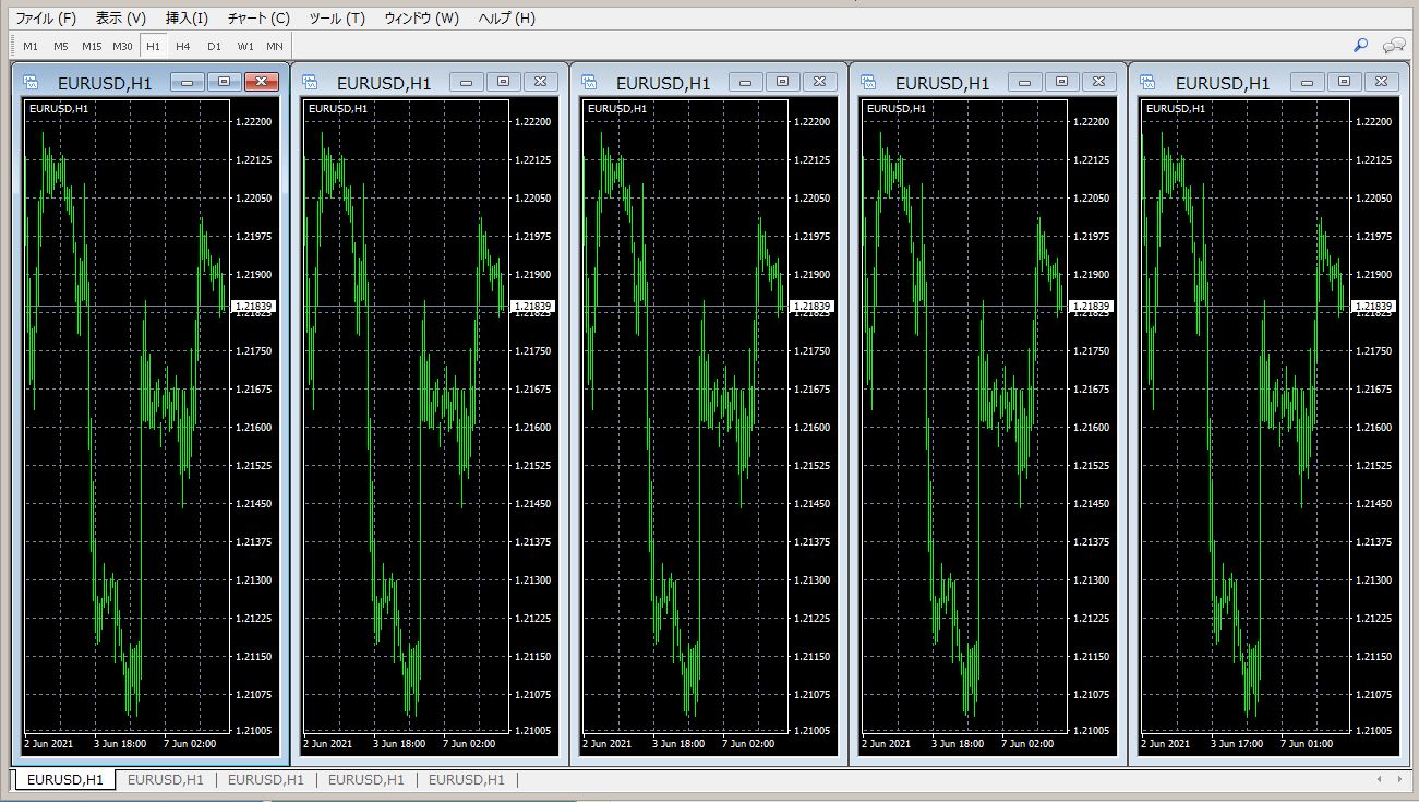 (3) [ファイル]-[新規チャート]でチャートを5枚開きます。