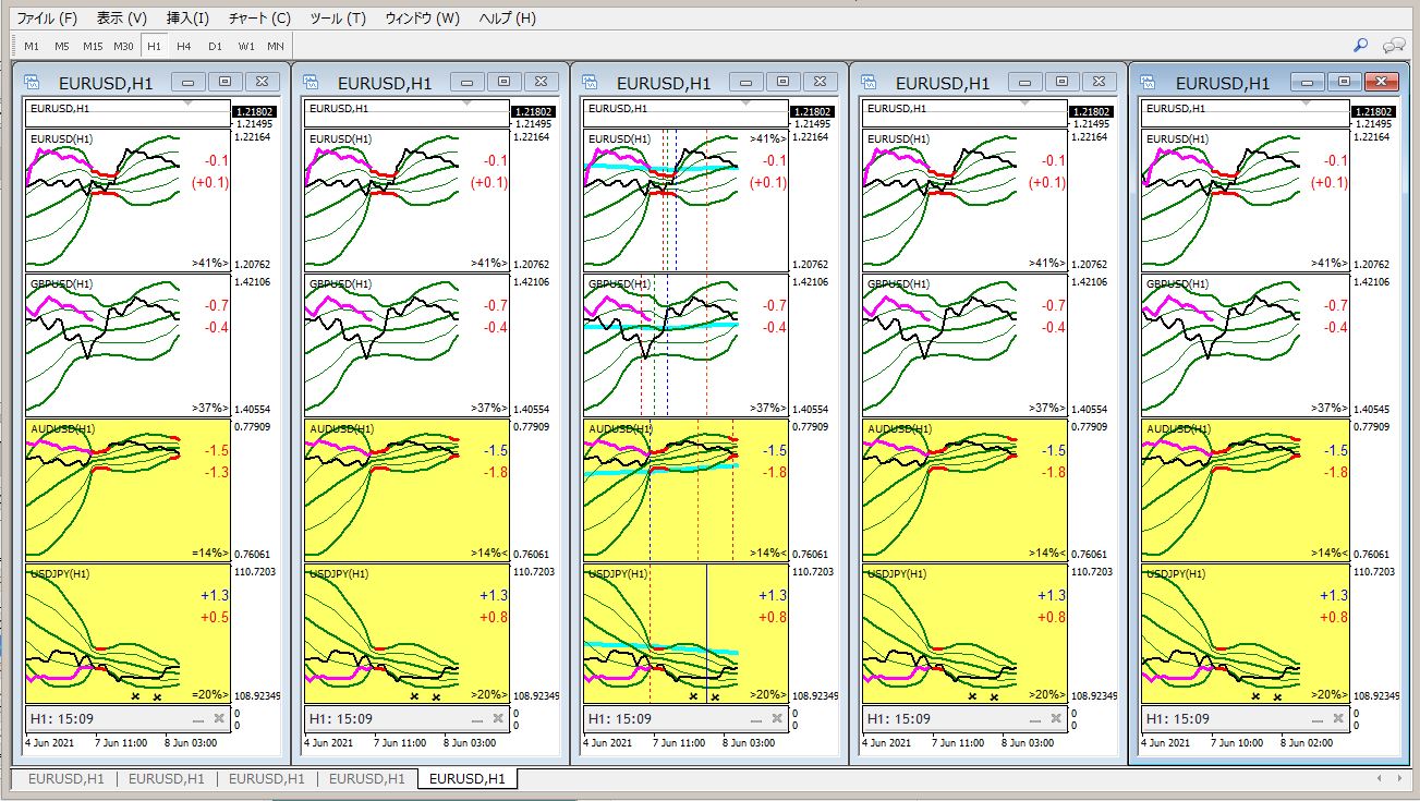 ●通貨ペア4個×時間足5個の一覧表示 (変更可能)