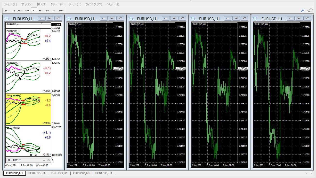 ●通貨ペア:EURUSD・GBPUSD・AUDUSD・USDJPYの4個 (変更可能)