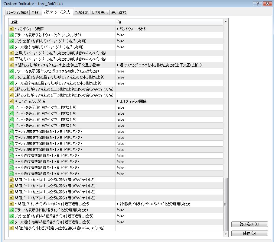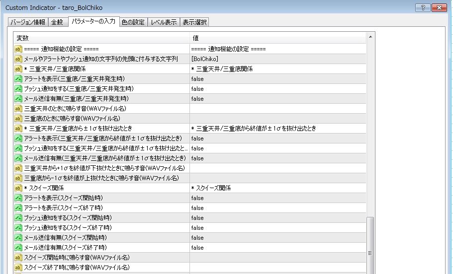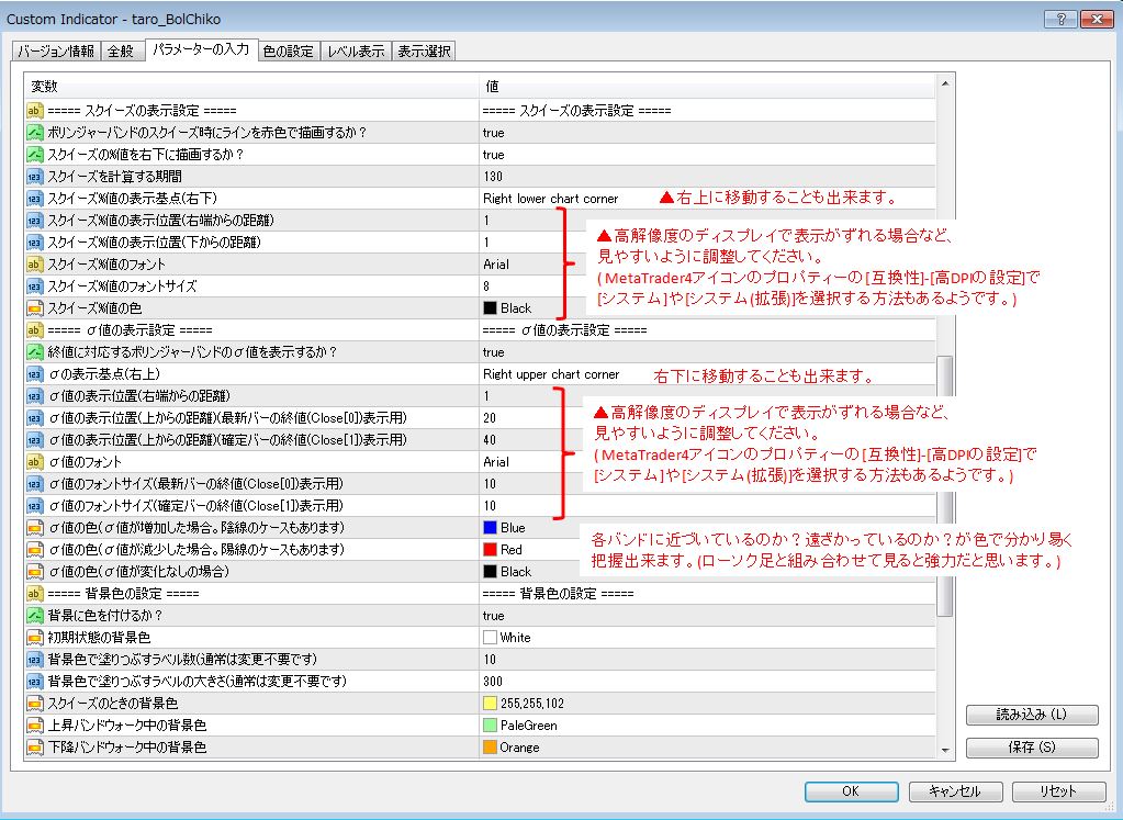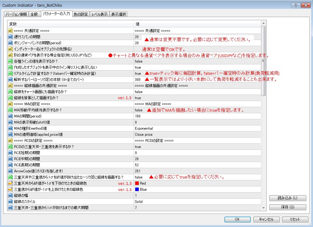 │││├ taro_BolChiko.ex4 ... BolChikoインディケーター本体