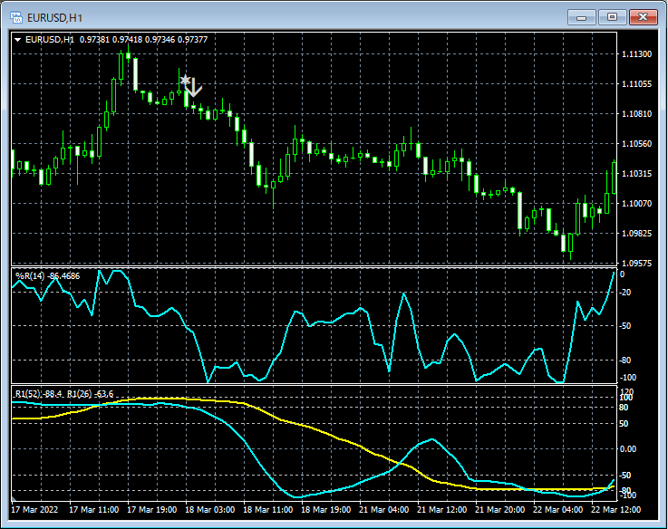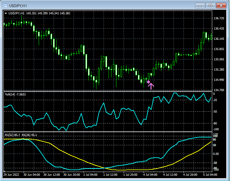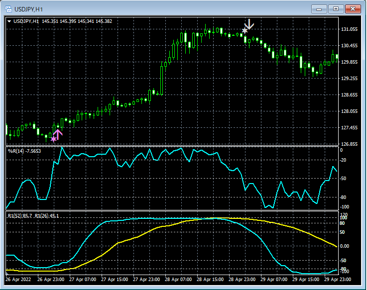 (なお、ウィリアムズ%RはMT4に標準搭載されております。)