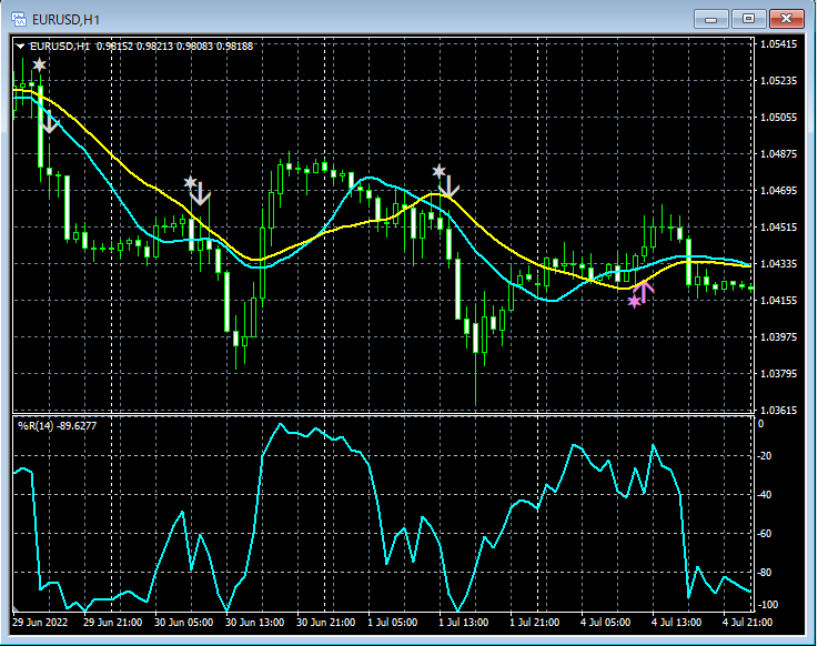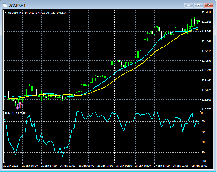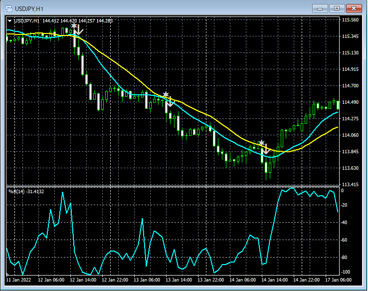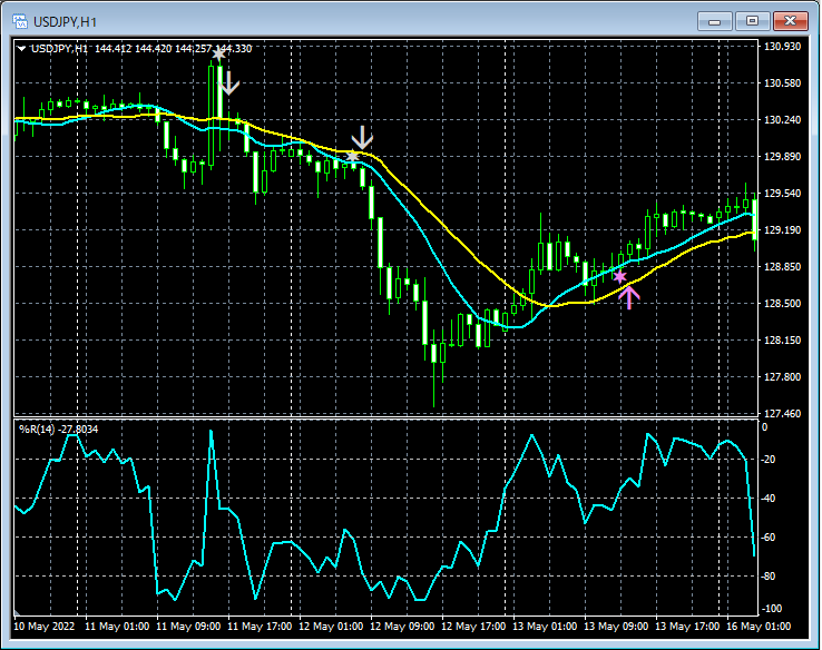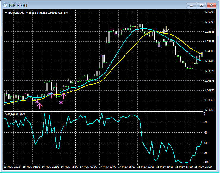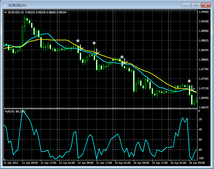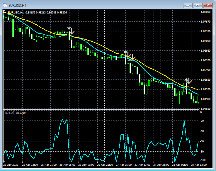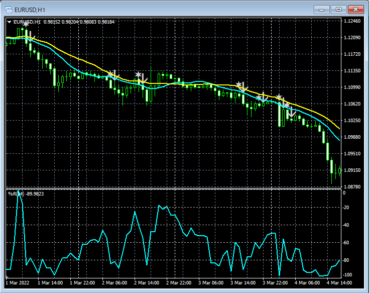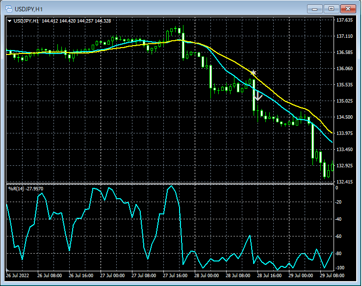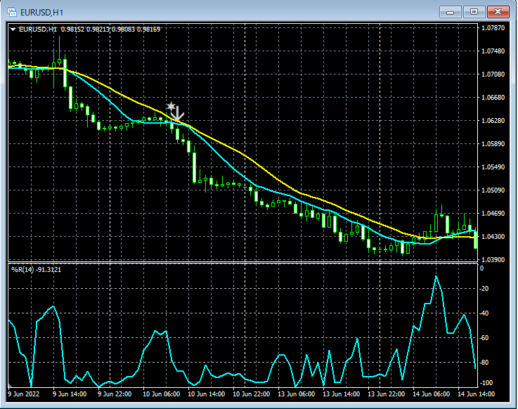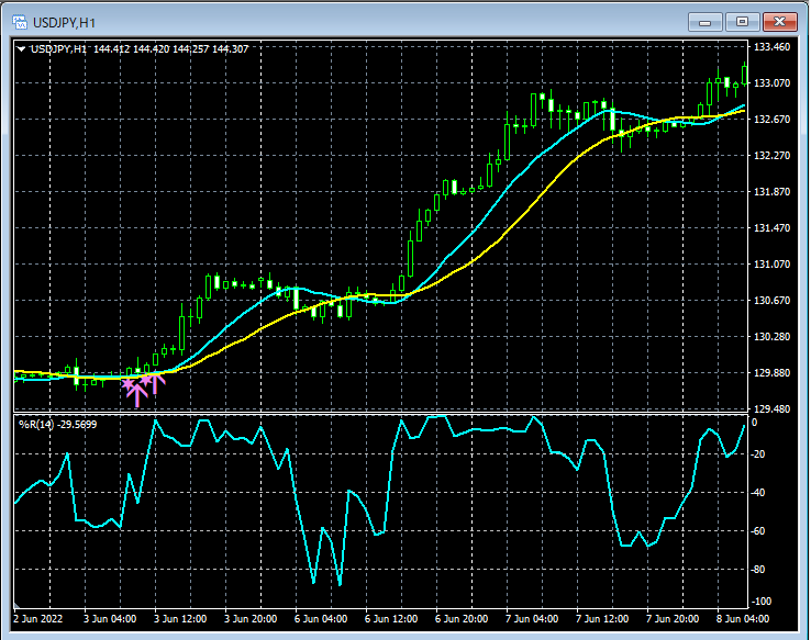 (なお、ウィリアムズ%RはMT4に標準搭載されております。)