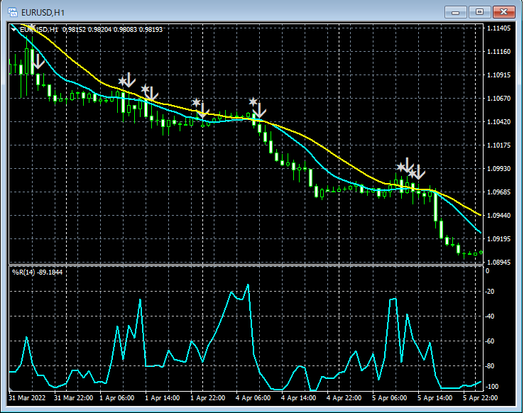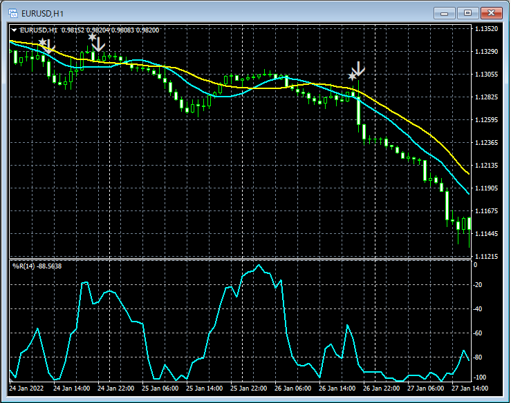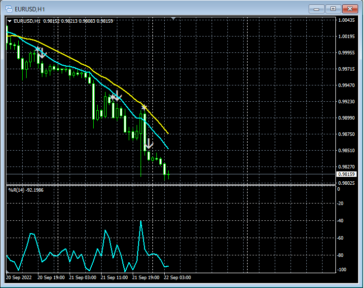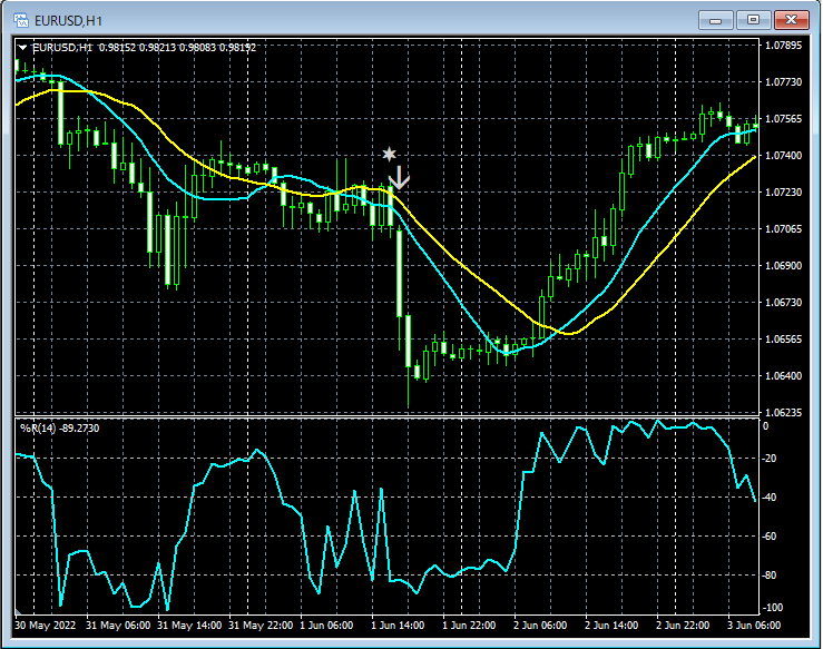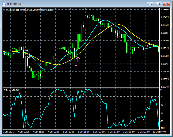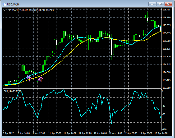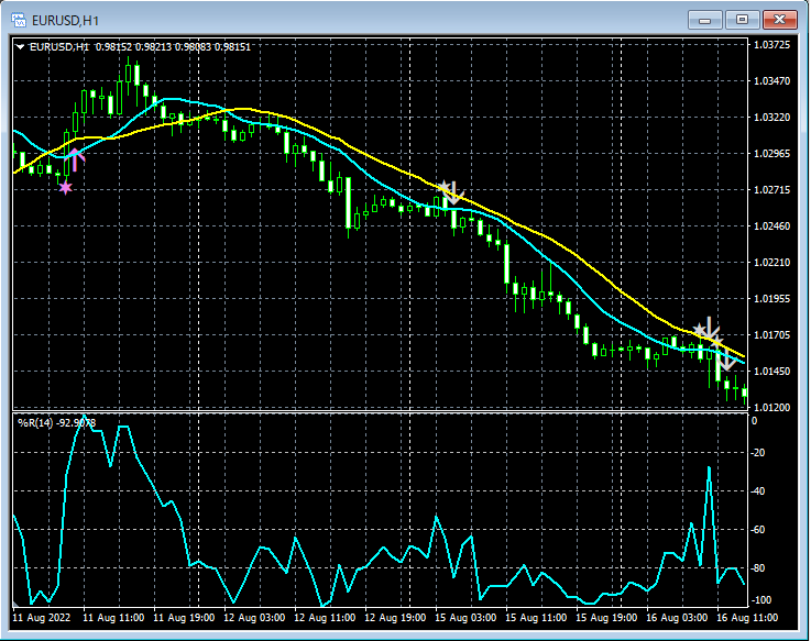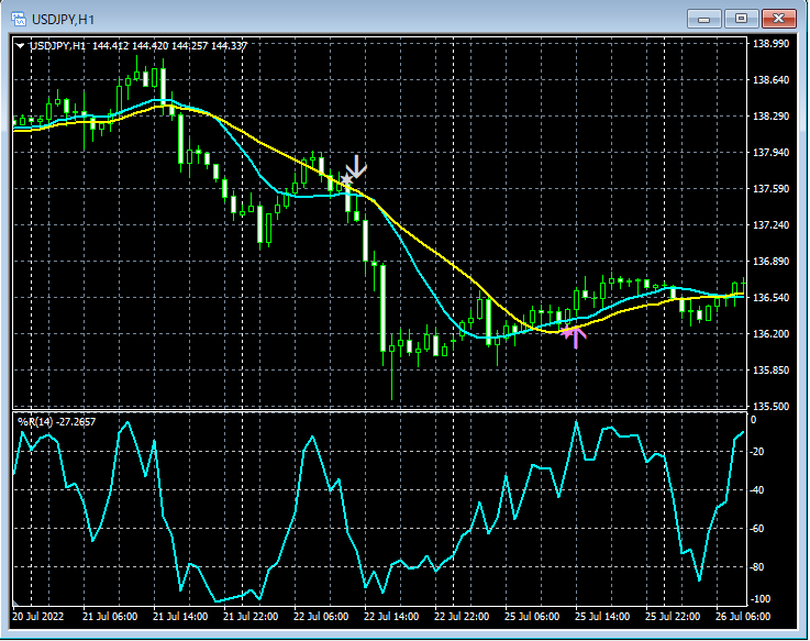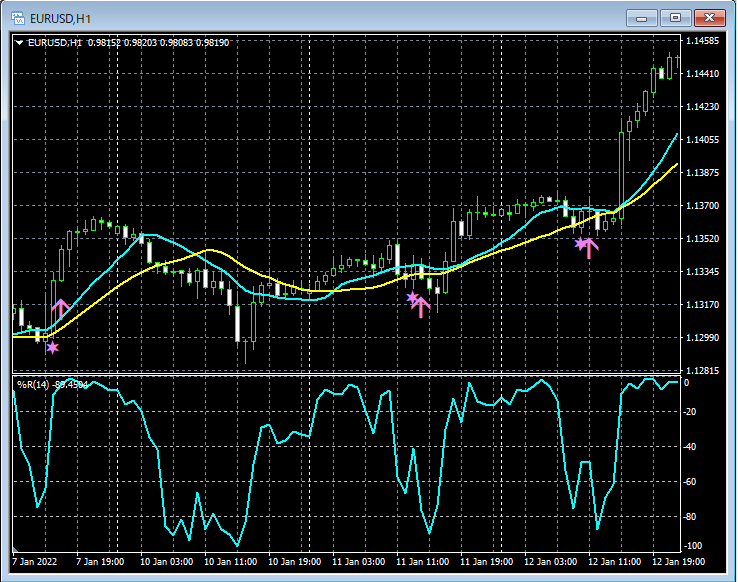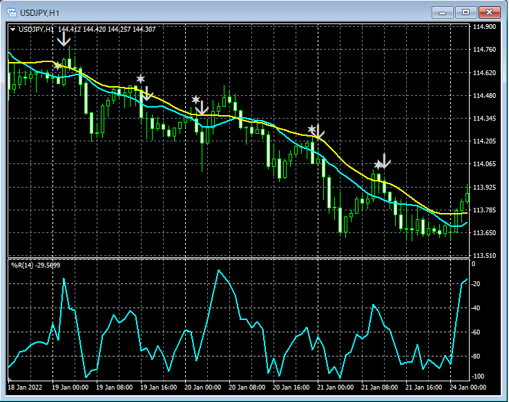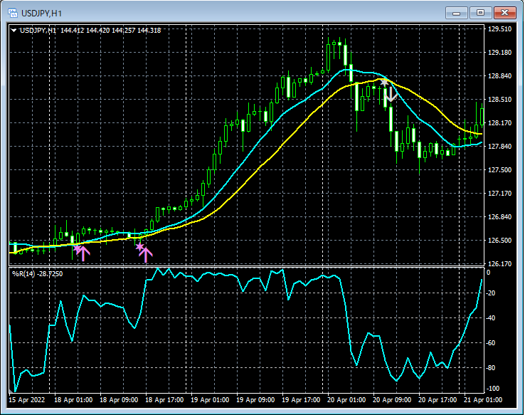 (なお、ウィリアムズ%RはMT4に標準搭載されております。)