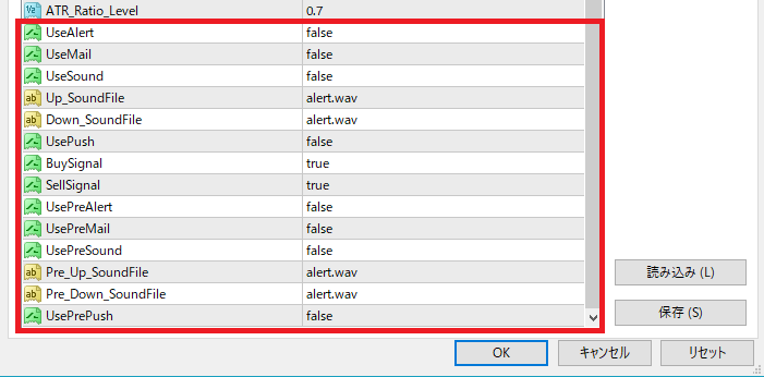 上記の各設定項目における設定値については、ユーザ様それぞれの手法,通貨ペアやタイムフレーム,その時々における相場状況などに応じてお好みの設定でご利用下さい。