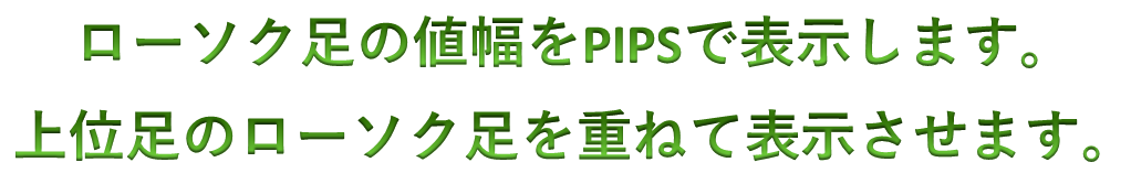 ローソク足の値幅をPIPSで表示できる! さらに上位足のローソク足を重ねて表示もできる!