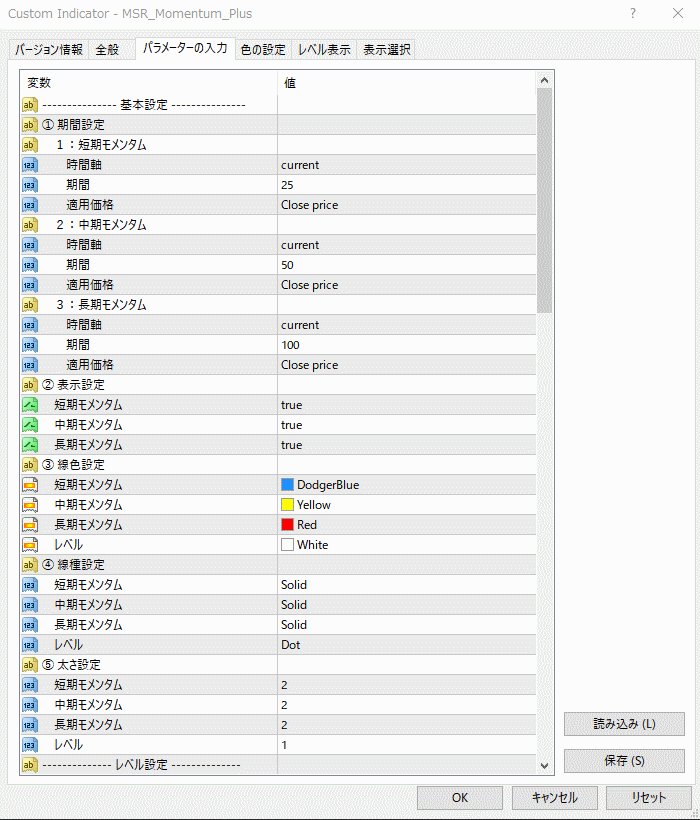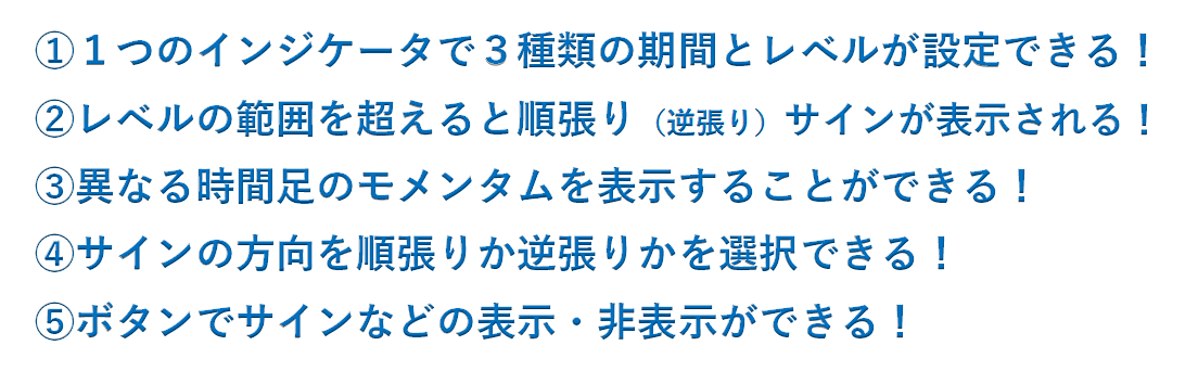 1つのインジケータで3種類の期間とレベルが設定できる!レベルを超えるとサインが表示される!ボタンでラインやサインの表示・非表示が簡単にできる!