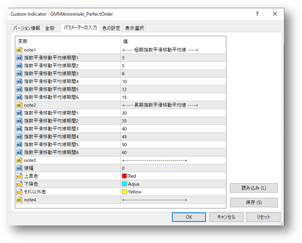 インジケータ名:GMMA色認識パーフェクトオーダー