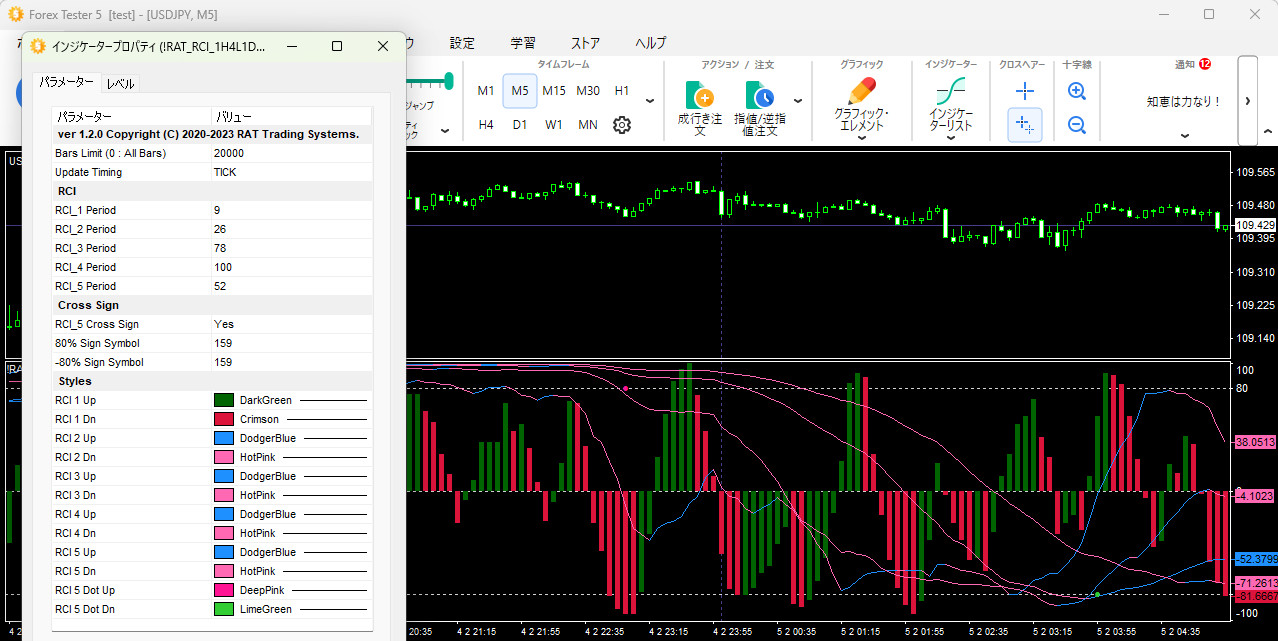ForexTester用 RCI ヒストグラム 3,4,5本 高機能 インジケーター (FT2,FT3,FT4,FT5 対応)