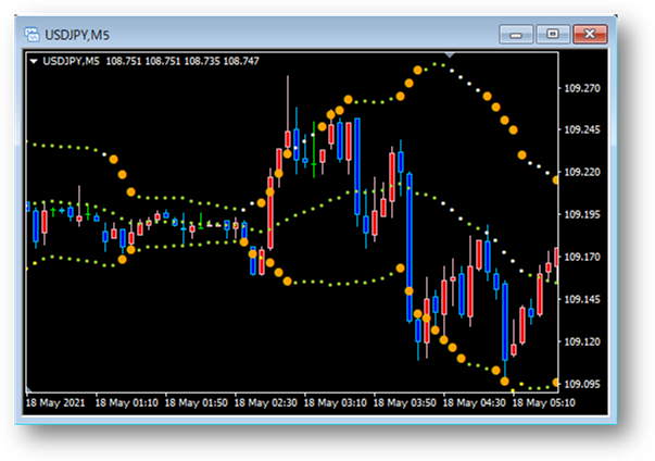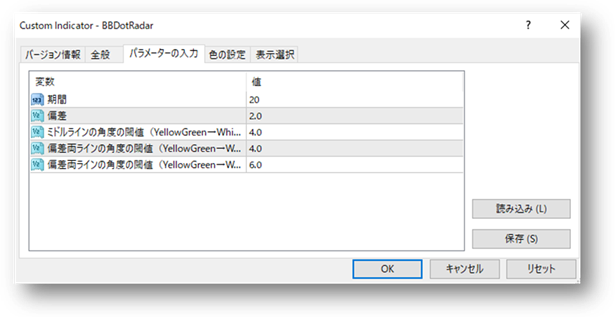 トレンドが変われば、自動的にバンドを表示しているドットの色・大きさで分かりやすいよう工夫を凝らしています。