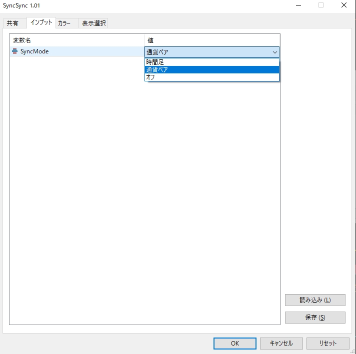また、パラメータ画面で時間足を選択している場合は、ツールバーの時間足を選択するとシンクシンクを適用しているタブの時間足が一括で変更されます。
