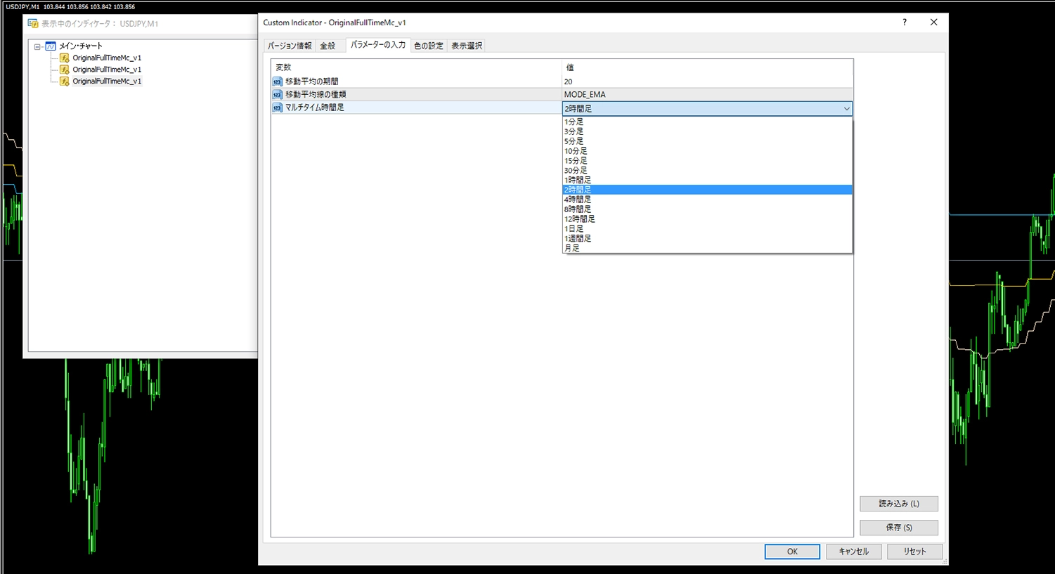 1分足に3分、10分、2時間を表示