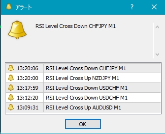 「上抜け」と「下抜け」のそれぞれについてRSIのアラートラインを任意に設定可能となりました。アラート機能(メール,サウンド,ダイアログ)およびプッシュ通知機能付き。