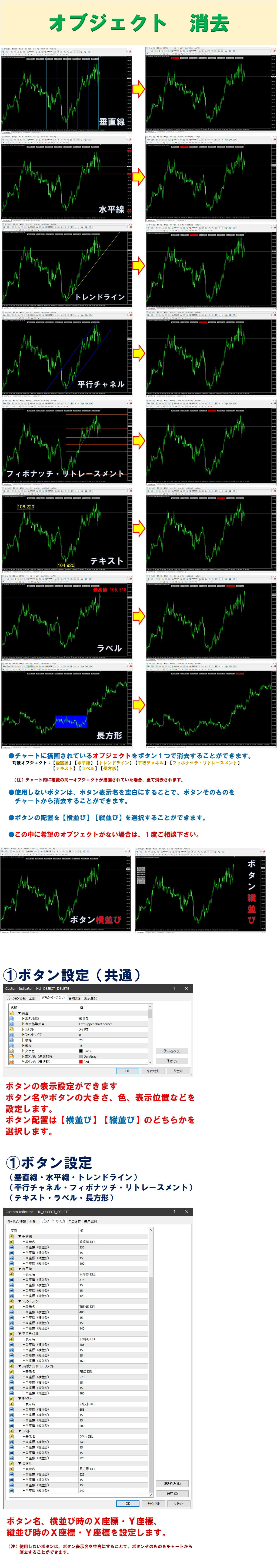 描画されているオブジェクトを全て消去する(垂直線・水平線・トレンドライン・平行チャネル・フィボナッチ・リトレースメント・テキスト・ラベル・長方形)