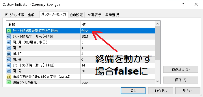 ※変更する場合、パラメータ「チャート終端を最新時刻まで描画」を falseにして下さい