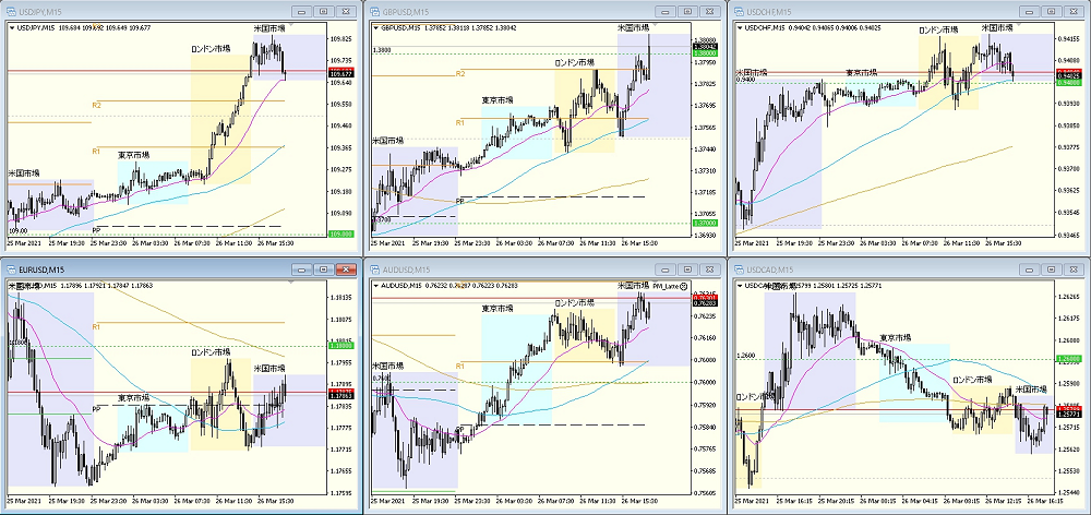 前々日高値から前日安値までの50%やや手前に利確ポイントを設定し、結果的には27pipsで利確。