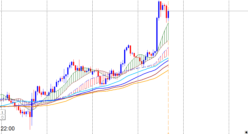 MT4VT_Chartとの連動専用でチャートにインジケーターを導入すると、移動平均線が最大8本とその間を塗る2箇所のラインが表示されます。