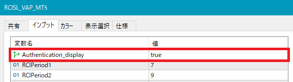 下図の通り、"DLLの使用を許可する" にチェックを入れる必要があります。 ツール → オプション → エキスパートアドバイザ 2-MT5_Option_DLL_Settings_20210331.png 3-RCISL_DLL_Settings_20210331.png 4-RCISL_Settings_20210331.png  上図の通り、RCIPeriod1 と RCIPeriod2 で、2本のRCIの期間を設定する必要があります。   RCIPeriod1 : 1本目のRCIの期間 (初期設定では 7)   RCIPeriod2 : 2本目のRCIの期間 (初期設定では 9) 星印や矢印の表示位置に関する設定項目  星印や矢印の表示位置がローソク足に近すぎて見にくかったり、逆に遠すぎて場合によっては表示位置が画面外になってしまう場合もあります。これらの印を表示する高さを、下記の設定項目の値を調整することにより、修正することができます。値が大きいほど表示位置はローソク足から離れていきます。    (初期設定ではオレンジ色の)星印→ OrangeStar    (初期設定ではオレンジ色の)矢印→ OrangeArrow    (初期設定では黄緑色の)星印→ GreenYellowStar    (初期設定では黄緑色の)矢印→ GreenYellowArrow  また、下記の項目の値を変更することにより、星印や矢印の形状を変更することができます。    (初期設定ではオレンジ色の)星印 → Arrowtype1    (初期設定ではオレンジ色の)矢印 → Arrowtype2    (初期設定では黄緑色の)星印 → Arrowtype3    (初期設定では黄緑色の)矢印 → Arrowtype4  なお、星印や矢印あるいはその代わりとして使用できる記号とそれに対応する番号は下表の通りです。 アラート機能に関する設定項目 UseAlert:  下図のようなアラートダイアログによりサイン発生を知らせる機能を使用する場合には true、使用しない場合には false を選択する。 5-RCISL_MT5_Alert1_20210329.png UseMail:  メールによりサイン発生を知らせる機能を使用する場合には true、使用しない場合には false を選択する。 UseSound:  アラート音によりサイン発生を知らせる機能を使用する場合には true、使用しない場合には false を選択する。 BuySoundFile:  上向き矢印が発生した時のアラート音に使うサウンドのファイル名を入力する。 SellSoundFile:  下向き矢印が発生した時のアラート音に使うサウンドのファイル名を入力する。 UsePush:  プッシュ通知によりサイン発生を知らせる機能を使用する場合には true、使用しない場合には false を選択する。