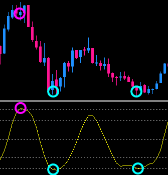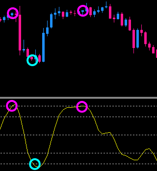 この投資法はチャートの天底がはっきりするオシレーター型のオリジナルインジケーターを使います。