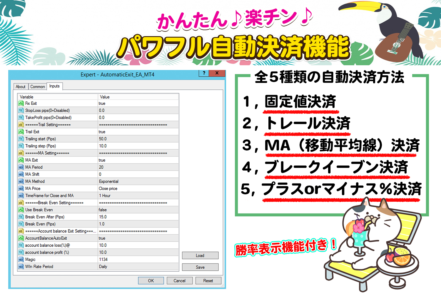 某大学教授のFXトレードの論文には、トレードするときエントリーは手動で、決済は自動で行うのがベストな成績が出せると書かれていました。