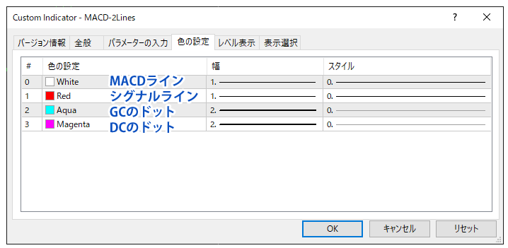 パラメーター設定は通常のMACDと同じなので、特に難しいところはありません。