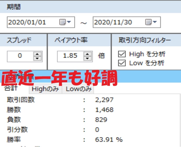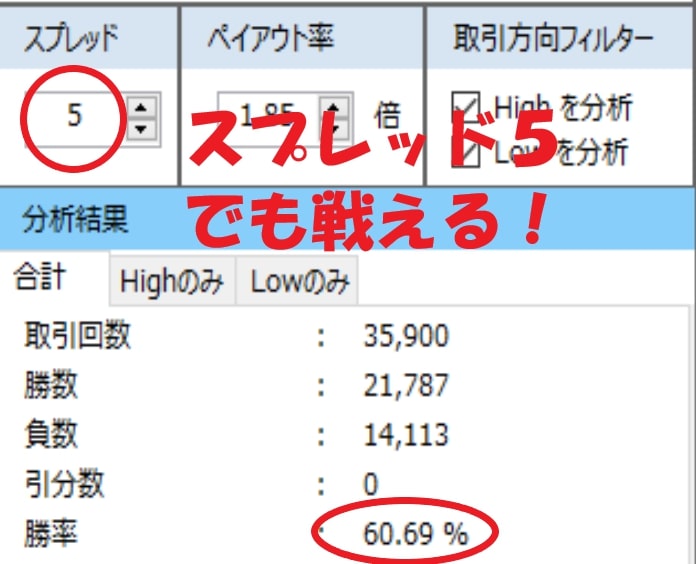 スプレッドが5ポイントの悪条件でも驚異の勝率60.69%をキープ!